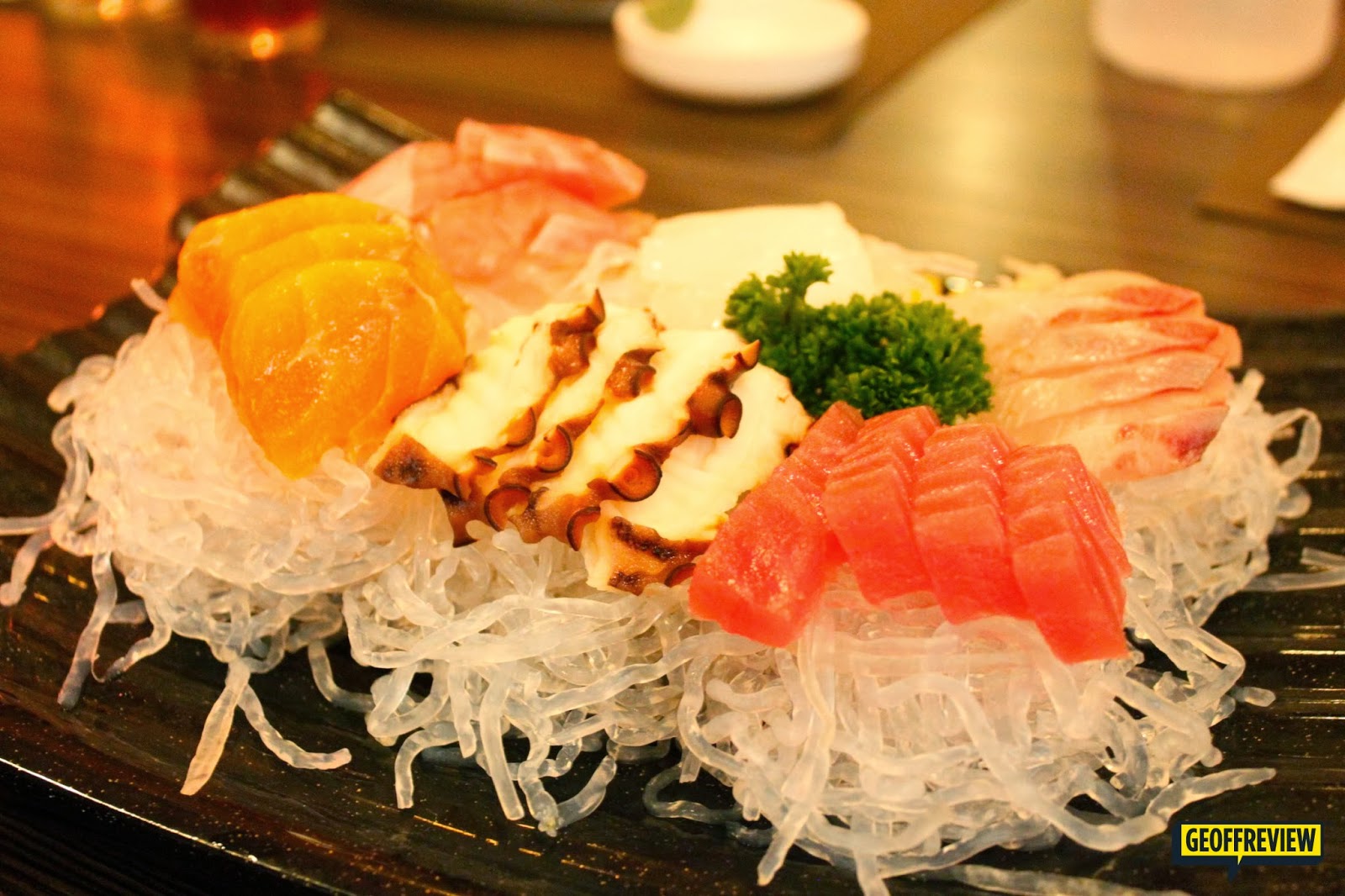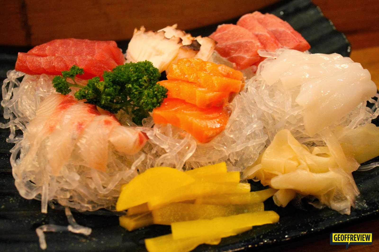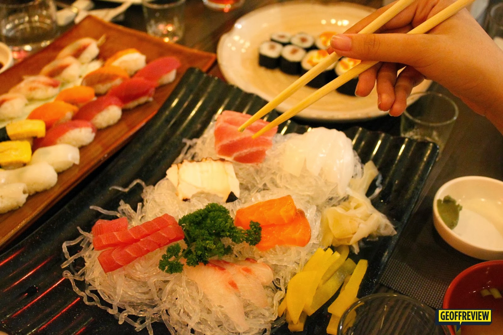 We were treated to an awesome dinner of Unlimited Sushi and Sashimi (Ph 699.00)! The cheerful and accommodating gentlemen who attended to our orders offered us an array of Sushi, Sashimi, and two types of salads (I loved the sweetness of the Kimchi!). The various kinds of sashimi were laid on a bed of rice noodles, giving the impression that the fish was served on ice, making them look fresher.