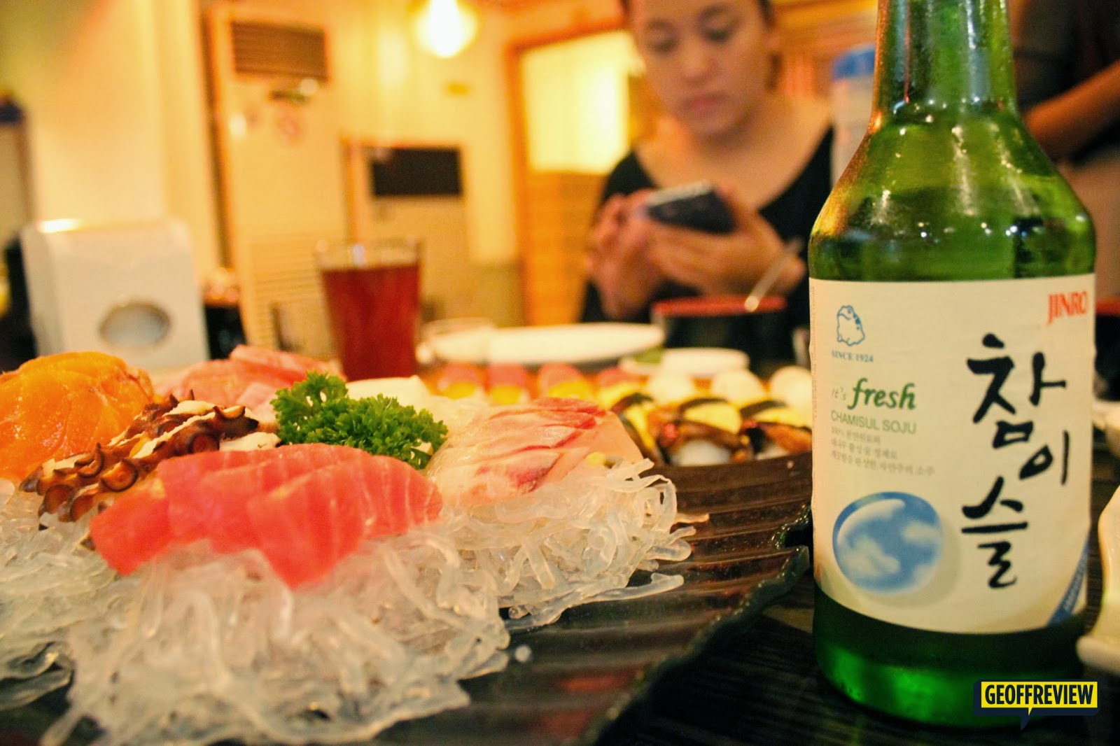 | What better to complement unlimited sushi and sashimi than unlimited soju? |
