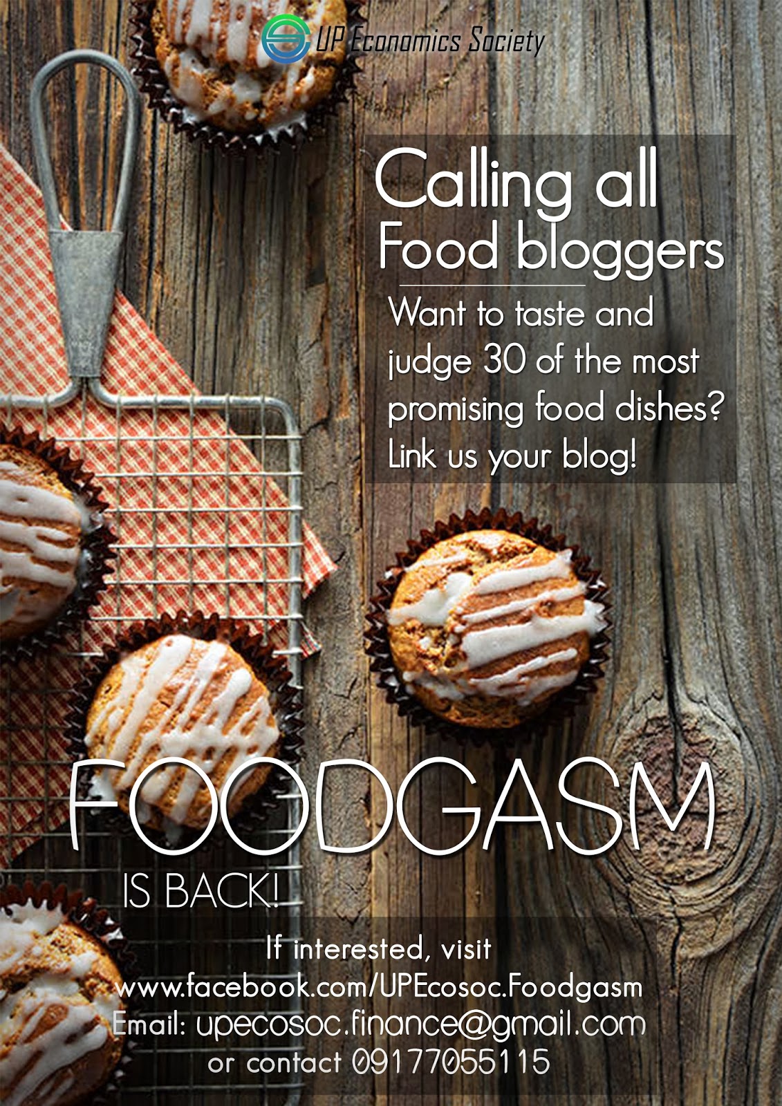 If you’re a food blogger and you’d like to be one of the event’s foodie-blogger judges, just give the UP EcoSoc organizers a heads-up to be one. Check out the details in the poster below to know how:
