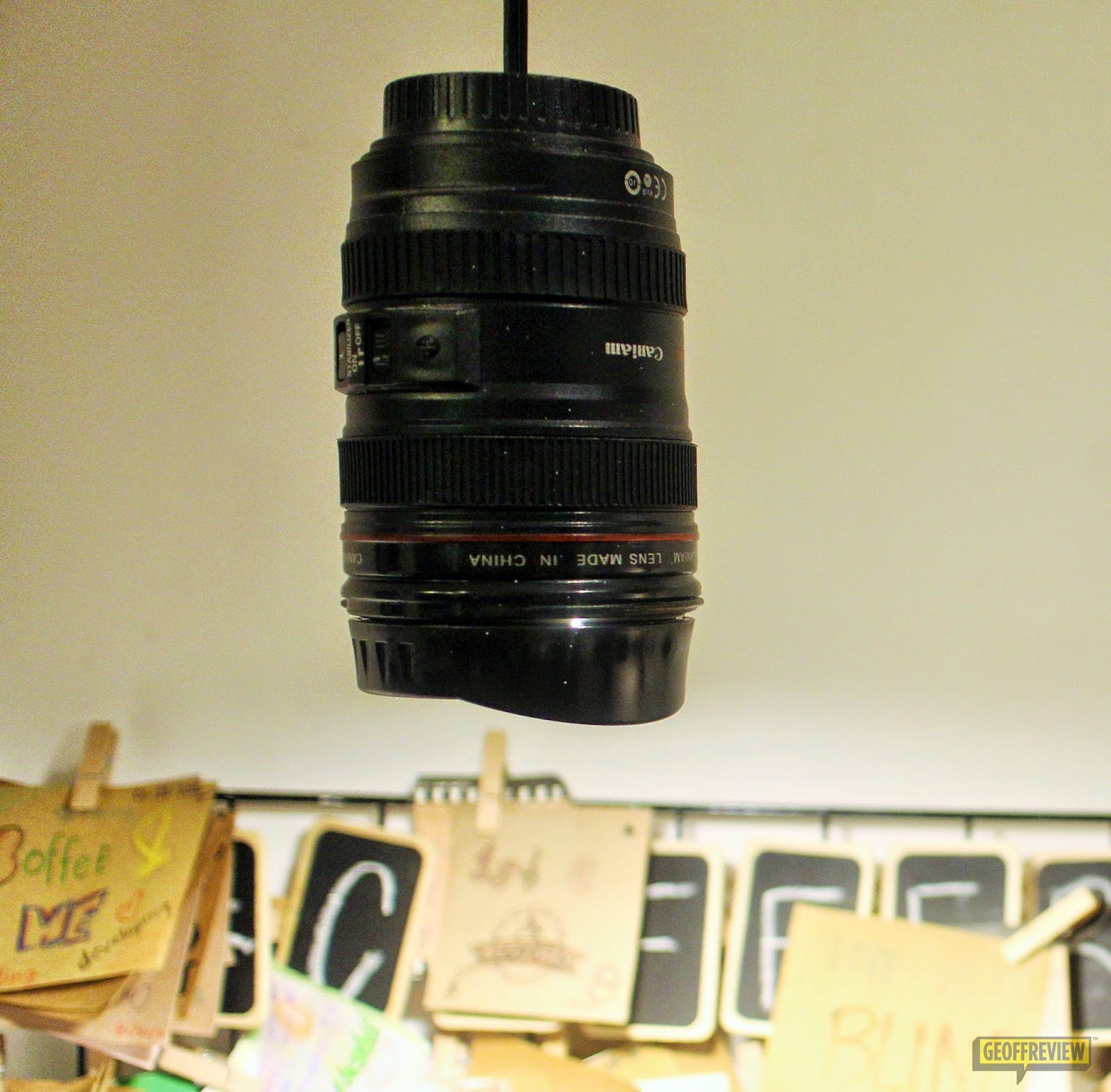 To be fair though, the place did deliver when it comes to the concept it was famous for. Photography paraphernalia are all over the place! Cameras and photography designs are all over the walls – even the lamps hanging over each table resemble camera lenses. Some drinks (I believe the hot ones) are even served in camera lens tumblers, which are also for sale if you want ‘em.