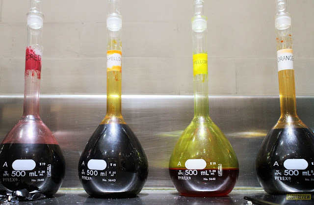 The process starts by boiling a mixture of sugar, water, and glucose for a good 10-20 minutes, until a certain level of temperature is reached. While waiting for the mixture to be ready, the Candy Man starts preparing a carefully measured concoction of flavors and colors, with the measurement depending the design and flavor you want. In my case, the variety we’re preparing is the Radioactive Rock that has the “Citrus Mix” flavor, which is essentially a combination of grapefruit, lemon, and lime flavors. The end result is pretty much like the taste of cola.