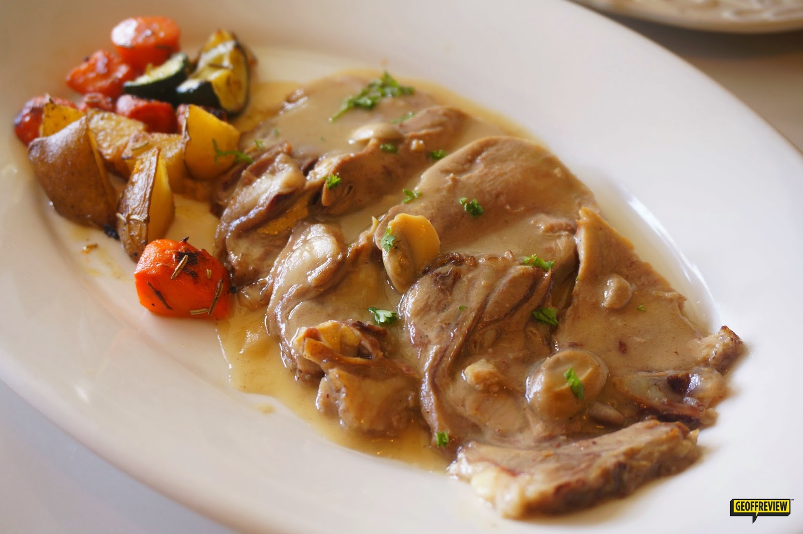 Aside from the Crispy Pata, their other best sellers are the Callos ala Madrilleña (ox tripe and tail stew with Spanish chorizo, Php 275.00), and the Lengua con Setas (ox tongue in creamy mushroom sauce, served with roasted veggies, Php 450,00). Since the Crispy Pata was already heavy on its own, we just ordered the Lengua as our second dish.