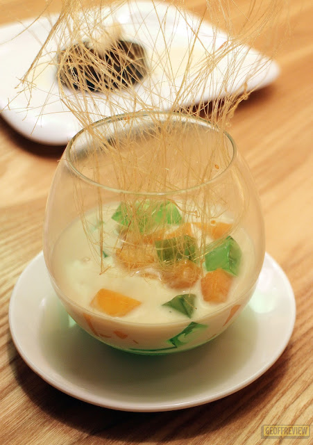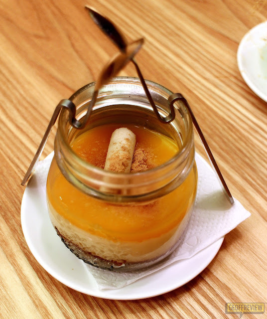 Mango and pandan cubes are swimming in delightful, sweet cream. Caramelized sugar is added on top of the jar as garnish. This is also something that you can stir into the mixture for added sweetness, although the distinct taste of condensed milk is already sweet enough if you ask me.