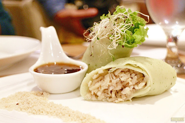I often hear about Lumpiang sariwa but this is the first time that I encountered Lumpia Presko. What makes this version different is that the stuffing is composed of sautéed crabmeat and bamboo shoots, while the wrapper itself has been infused with malunggay.