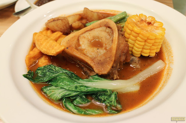 I love pochero and bulalo is one of my favorite soups so a fusions of these delicious dishes should be foodgasmic! Swimming in the thick, reddish soup together with the beef shank are pieces of banana, camote, baguio beans, and pechay.