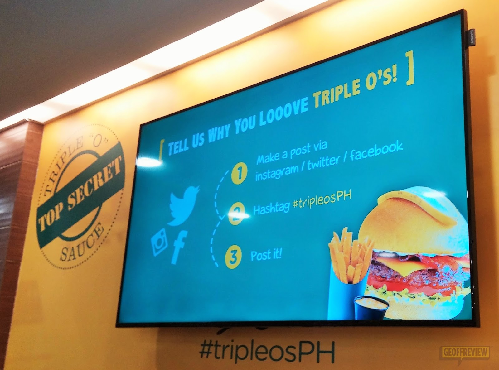 It was difficult to look for a place to eat in SM Megamall last weekend as it seemed like almost all of Metro Manila was there. Thank heavens, we were able to spot the glowing green signage of Triple O’s and saw that there were still available seats inside this new burger joint.