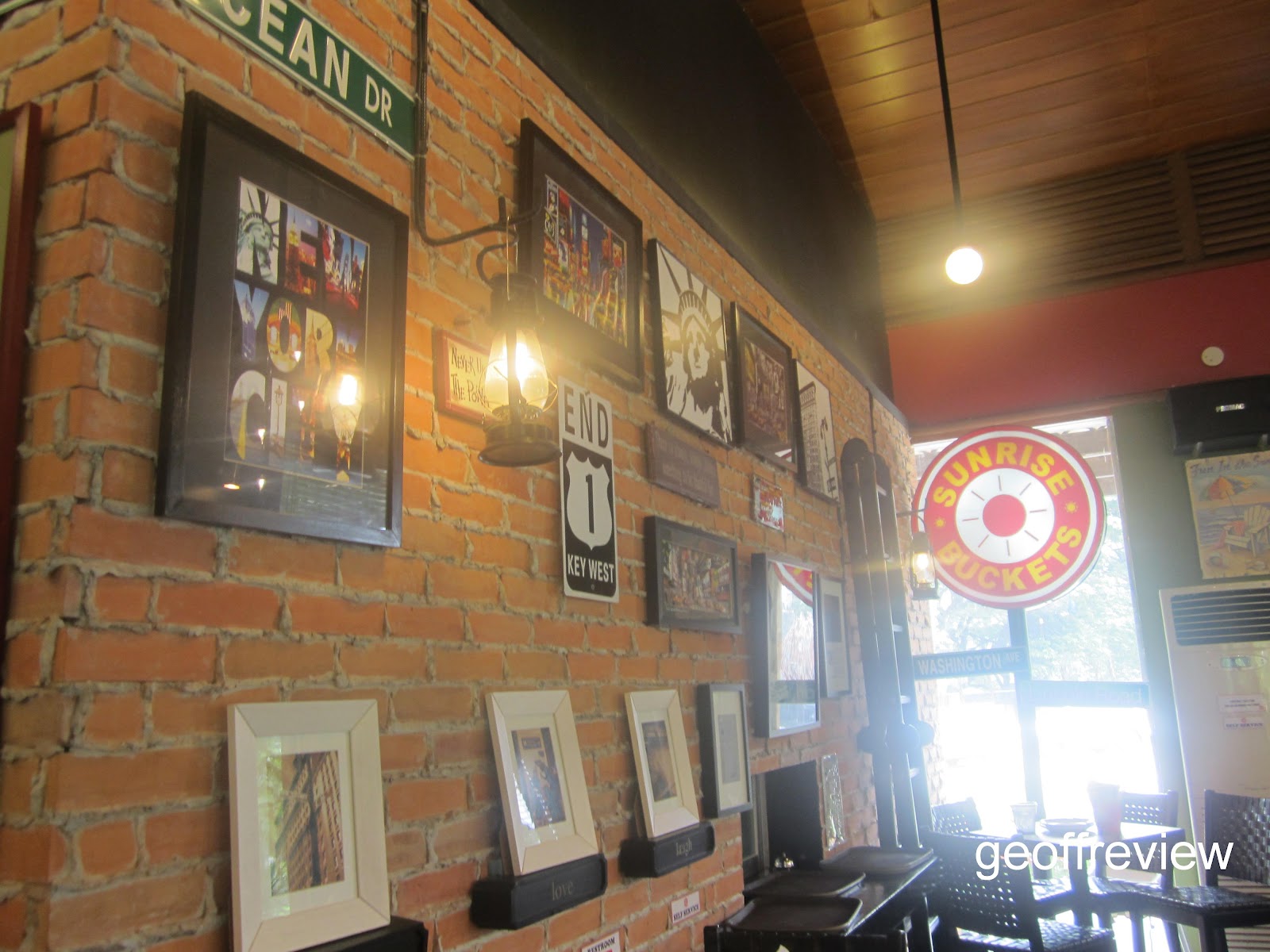 Sunrise Buckets has branches in The Grove – Rockwell at Pasig, and at Madison Square, North Greenhills. We went to the Grove branch, and it was a really nice place. New York is just all around you. The fun and creativity of the atmosphere adds to the total New York dining experience.