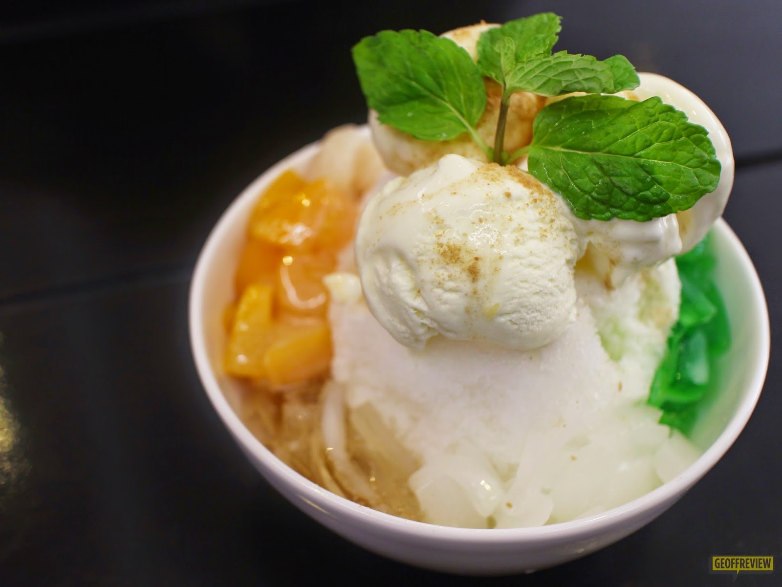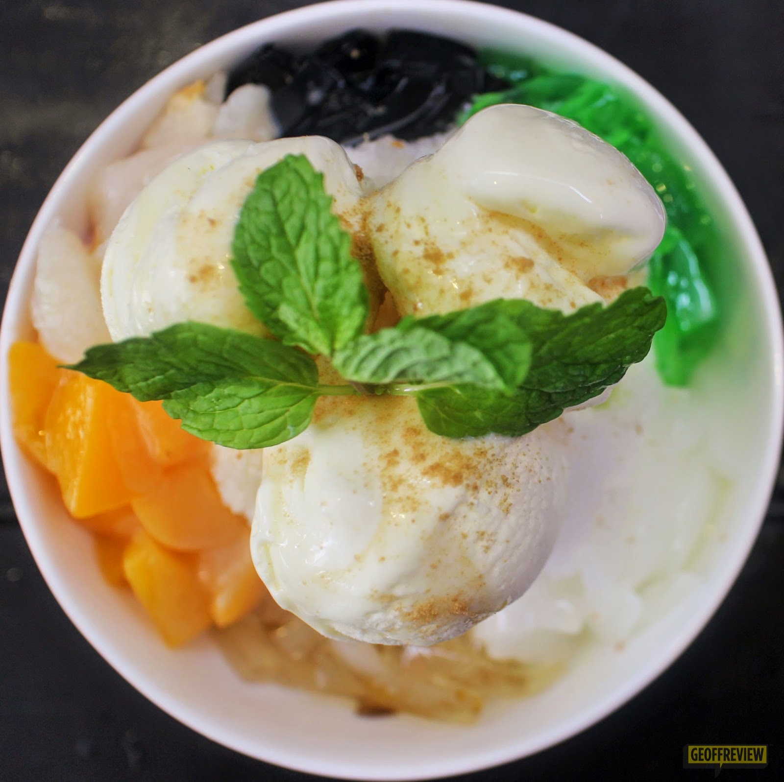 With all that heat and spices, our tongues were asking for a refresher. We asked for the Bao Bing as our dessert, which on first impression is like the fancier Chinese version of our local Halo-halo. The finely shaved ice (all shaved-ice desserts should be like this!) is surrounded by fig and grass jelly, lychee, mangoes, and coconut shreds; all bathed in condensed milk and finally topped with three thick and creamy scoops of vanilla ice cream, and garnished with mint leaves.