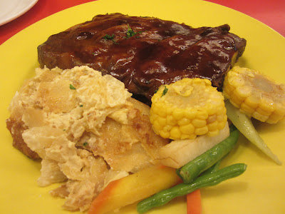 Okay let’s get down to the highlight: the food. We ordered the usual favorites in most steak houses – the Baby Back Ribs and the Ribeye Steak. And when we had them I got reminded why they are favorites. These taste good! Especially the Baby Back Ribs. The meat is so soft you will hardly need a knife when you eat it. It has the right kind of sweetness and flavor you look for when having your ribs. You also get to choose which sidings you want. Here are the sidings you can shoose from for the Back Ribs: