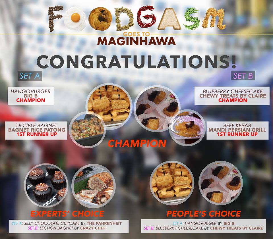 I’m happy to know that some of my choices ended up as winners! I present to you the winners of Foodgasm Goes to Maginhawa: