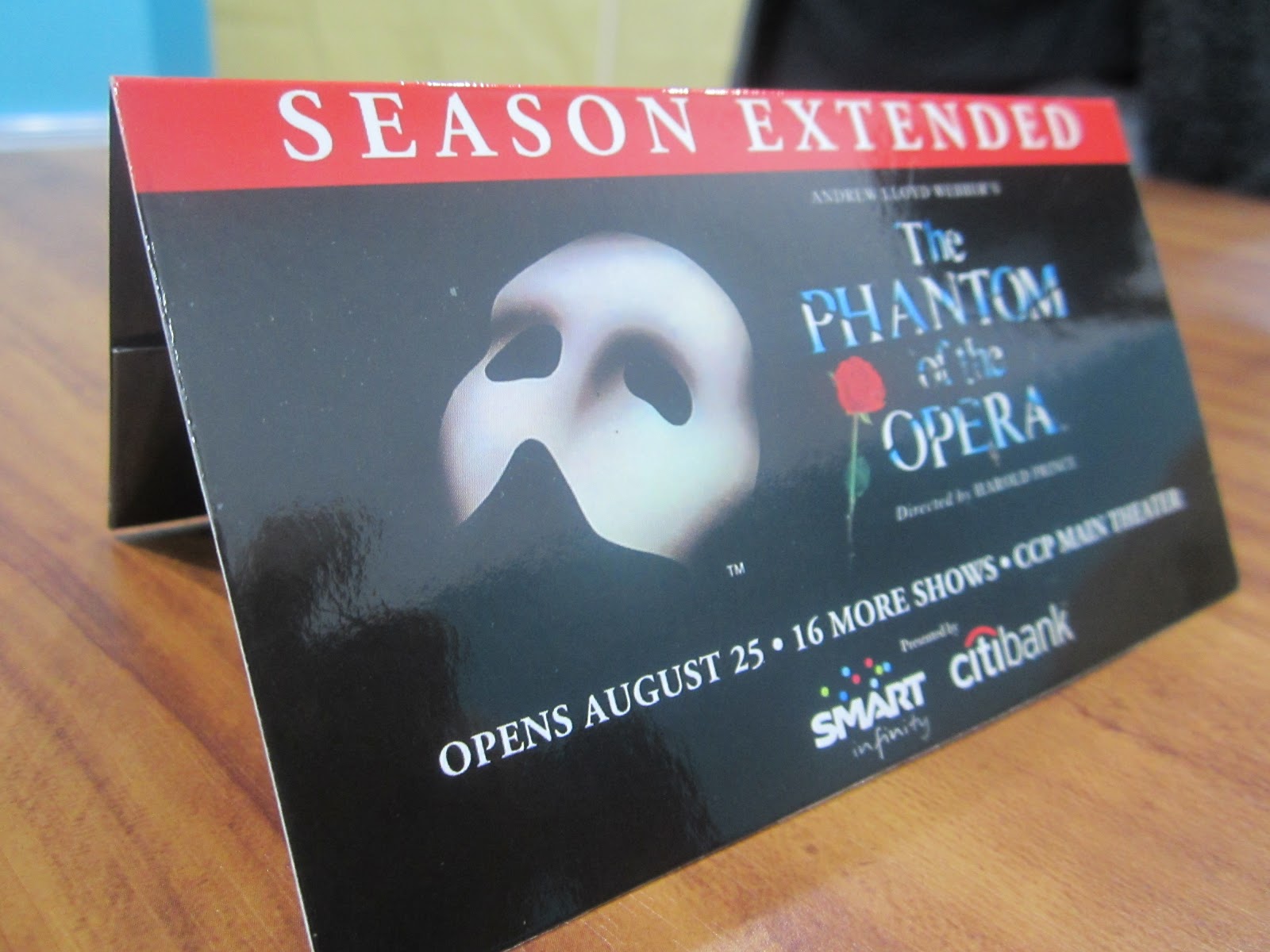 The Phantom of the Opera was supposed to run only until August 2012. But because of the high demand and in Producer James Cundall’s words, “unbelievable acceptance of the Philippine audience”, the show was extended until October 14 – which was great for me because I would have not had the chance to watch had it not been extended. My sister got us tickets to the 8PM show on October 14.